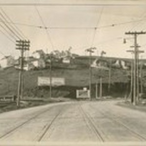 North on San Bruno Ave. from Cresent [Crescent] St. showing the Burnel [Bernal] Hills. Feb. 1927