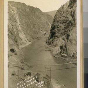 The foot Bridge. May 1932. 50 ft. in dia. are the portals at Hoover Dam. Oakes