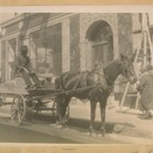 Image / A one horse fruit wagon at the S.E. cor. Broadway & Grant …