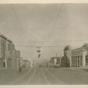 North on Van Ness Ave. from Pacific St. Oct. 1926 - The large building on the left was built on the sight where the home of Col. John D. Stevenson, U.S. Shiping [sic] Commissioner stood. J.D. Stevenson was a Pioneer