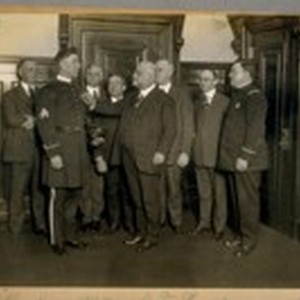 L. to R.: Dec. 1923 - A.F. Lemberger - Lieut. of Police Chas. Dullea - Jesse B. Cook, Police Commissioner - W.L. Hughson - Col. W.F. Culbertson - Capt. of Detectives D. Matheson - Elliott M. Epsteen, and Chief of Police D.J. O'Brien - Presenting Lieut. of Police Chas. Dullea with a star