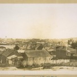 April 16th 1929. From Silver Ave. & the cattle pens on the hill. Looking S.E. and showing of Bay View Dist., Butcher Town, S.P.R.R. [Southern Pacific Railroad] trestle over the marsh lands