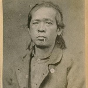 Ah You photographed in 1861. [Adjacent caption reads: "This is a photographic copy of the record and photo of the first Chinese arrested in San Francisco in 1861 for Petite Larceny. He was photoed [sic] the first day the Police Gallery opened in the old City Hall S.E. cor. Washington and Kearny Sts. In 1861.]