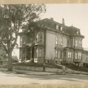 The Old Bell home, S.W. cor. Bush & Octavia Sts. In which the Old Colored Woman, Mama Pleasance [Mary Ellen Pleasant], held sway for years. House built about 1870. J.B. Cook at the corner