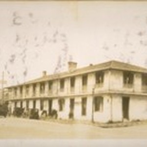 The old adobe Pacific Building cor. Scott & the Main St. at Monterey Calif. Built in 1847. Photo taken Jany. 1929. Built by Mackinlay