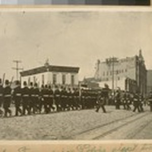 Co. A. San Francisco Police Dept. turning into Van Ness Ave. from Market St. 1898