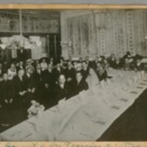 A Banquet in San Francisco China Town at about 1910 - 1- Superior Judge Carroll Cook - 2- Mrs. Carroll Cook - 3- Mar [?] Tan, Pres. of the Sim [? Tong - 4- Police Judge Weller - 5- Mrs. Weller - 6- Police Judge Oppenheim - 7- Mrs. Oppenheim - 8- Dept. District Attorney Becesey