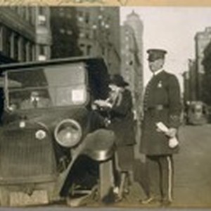 Officer W. Joy collecting with the young Ladie [sic] for the Red Cross. 1920 at Market and Grant Ave