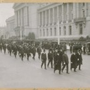 Funeral of Chief D.A. White, Chief Lynch and the Oakland Police in the lead, 1920