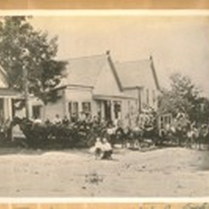 The Main street of Camptonville, Yerba [Yuba] Co., Calif., in 1900. These buildings were destroyed by fire a few years ago. The Camptonville & Downieville & Sierra City Stage in the center