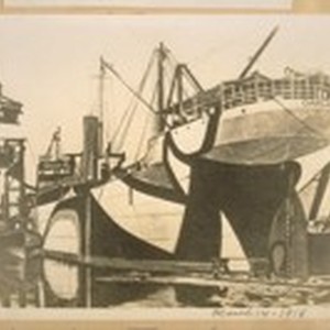 The freighter Oakland in her war paint, one of the three vessels launched at the Moor's ship yards on March 14/18