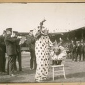 The Clown and his singing dog from the Olympic Club at the Community Service Circus at Ewing Field, S.W. cor. Masonic Ave. & Turk St., March 25th & 26th, 1922
