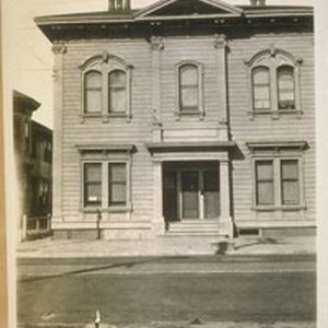 The old home of E. C. Sessions in Oakland at the N. W. corner Market and 8th St. It was moved from the old site around the corner on Market St. Photo taken Oct. 5/28