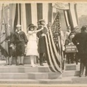 Miss Rolph at the halyard, same photo 1914. [Opening of the Panama Canal]