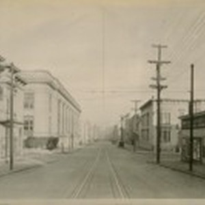 East on O'Farrell St. from Scott St. Feb. 1927. Showing the girls high school on the left