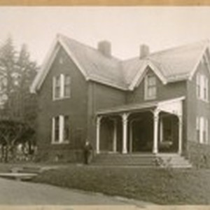 Home of the Supt. of the Cemetery Presidio, built about 1870. Jesse B. Cook in front of building