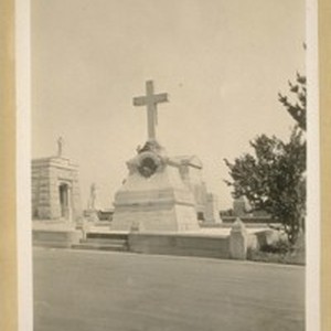 The tomb in Holy Cross Cemetery of Governor John G. Downey the 8th governor of Calif. Under the United States rule. He held office from Jany. 14th 1860 to Jany. 10th 1862. He was a Democrat. Born June 27th 1827 & died in Los Angeles on March 1st 1894. May 10th 1929
