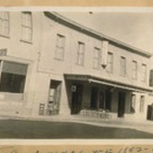 August 9/28. The Angelo Hatch built in 1852 on the Main St. of Angels Camp, Calaveras Co. Calif. In the lobby of this hotel Bret Harte reciled [sic] the Jumping Frog. In earlier years Mr. and Mrs. Atto Dollins ran this hotel