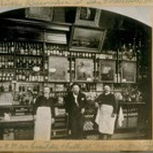 Temple Bar, N.W. cor. Grant Ave. & Sutter St. Proprietor Mr. Harris in the center at Bar, 1895
