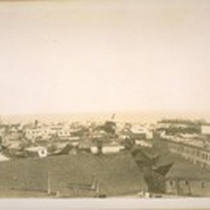 North from the Hotel San Carlos at Monterey, Calif. The tree marked #1 is in front of the old adobe custom house and #2 is the roof of the old adobe Pacific House now used by the Y.M.C. Ass. Photo taken Feb. 23/29
