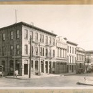 East side of Montgomery St. from Jackson St., taken Feb. 1924. Buildings built about 1854