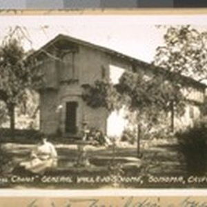 This is a brick building built by Gen. M.G. Vallejo in front of his old home at Sanoma [Sonoma], Calif. in 1850. July 1928, used as a store & warehouse by him "Swiss Chalet."