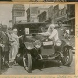 Police Officer Geo. Grunwald [right]. Red Cross Drive on Market St. 1918 - Ladie [sic] on left is Emma Bianchini and on the right Mollie Pinsler