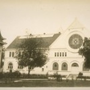 This is one of the old buildings of the College of the Pacific cor. Emery & Elm Sts. San Jose, now the property of the Santa Clara University High School. Mar. 1929