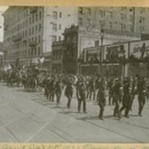 N.S.G. [Native Sons of the Golden] West Sept. 9th, 1920. Parade on Market St. near 9th. S.F. [San Francisco] Veteran Firemen