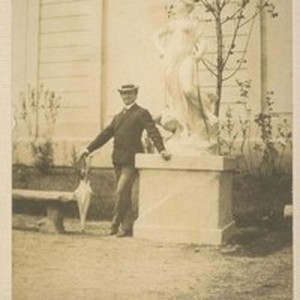 Image / [Herman George Scheffauer posing beside unidentified statue.]