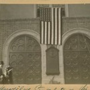The unveiled tabulate on the new fire house & home of the Chief of the S.F. [San Francisco] Fire Dept. The tabulate is in memory of the late Chief Dennis Sullivan killed in the fire of April 18/06. Bush St. bet. Mason & Taylor. Mar. 16/22