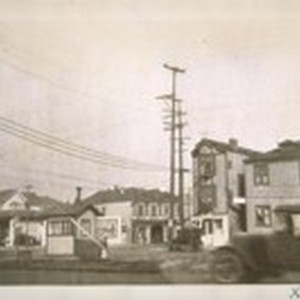 The S. E. corner 7th and West St. Oakland. The square house on the right was part of the 1st School building in Oakland. Photo taken Sept. 26/28