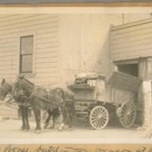 Image / A two horse butcher town wagon at 3rd and Evans Ave. Bay …