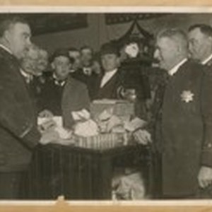 The 40-Thousand Dolr. Portland Or. Robbery, 1919. L to R: Capt. Judge, Lieut. Fitzhenry, Judge Cabanis, Mr. Fields, Off.?, Lieut. J.J. Casey, Off. H. Higgins, Off ?, Off. G. Chase, Off. Gainor