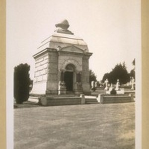 The tomb of Jas. Phelan in Holy Cross Cemetery. He died Dec. 23rd 1892. He was the father of Ex-Senator Jas. D. Phelan. Mr. Phelan was a pioneer of Calif. and arrived in San Francisco on Aug. 1849. His old home stood at the S.W. cor. 17th & Valencia. May 10th 1929