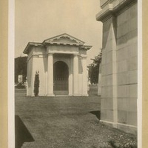 The tomb of Christopher A. Buckley who died in 1922. For years he was known as the Blind Boss of the Democratic Party in San Francisco. In the early days he had a cigar store in front of the old [Maguire?] Opera House in Washington St. bet. Kearny & Montgomery Sts. Later this theater's name was changed to the Bush St. Theater. May 10th 1929