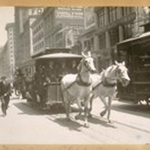 Mayor James Rolph Jr. driving same car. [Last horse car on Market St.]