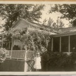 Full titleThe House of John Shire at Sonora- Tuolumne Co. Calif. Aug. 9/28. With his Grand Daughter Miss Dorothy Hoffmann. Shire was the owner of all the Stage line out of Sonora. He was the first stage driver that Chas. Barton alias Black Bart' held up. He had a gold watch given to him by Wells Fargo & Co. for saving Union strong box. The house was built in 1868 by Shire.