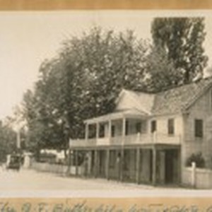 August 9/28. The B. F. Butterfield home and Store built in 1849 on the Main St. Jamestown, Tuolumne Co. Calif. It was in the early days a department store and Wells Fargo & Co. Express Office. The present agent for the Express Co. is his son, Mr. F. F. Butterfield--71 years young