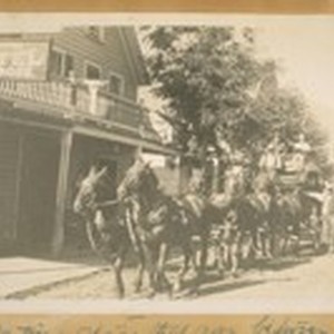 The Old time stage that ran between Sierra City and Sierraville, Calif. in 1908. Photo taken at Sierra City