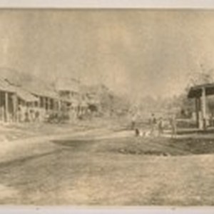 The old town of Shasta at one time the county seat of Shasta Co. 8-miles N.W. from Redding on the New Highway. The town at this date Feb. 1929 is a ghost town. Putting the rail road through and moving the county seat to Redding killed this place. The building [sic] that are now standing are all vacant. Photo taken in 1860