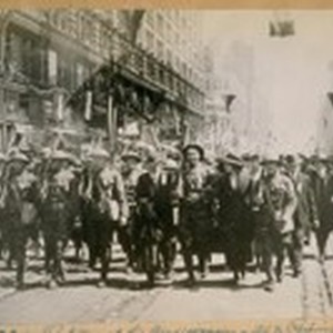 April 22/19. Return of the 91-Division-363 Regiment marching up Market Street passing the Phelan Bldg