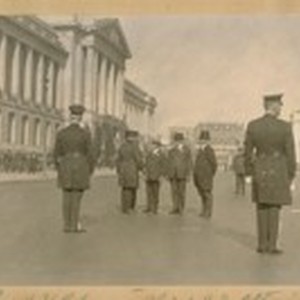 L. to R.: Capt. H. Gleeson - Chief D.J. O'Brien in front of him, Mayor Jas. Rolph, Jr. - Commissioner Theo. J. Roche - Jesse B. Cook - Andrew J. Mahoney, and Capt. F. Lemon. Oct. 27/23