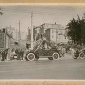 [German Day parade for the Panama-Pacific International Exposition]. Passing corner Green and Van Ness Ave