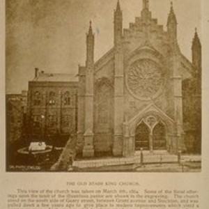 The Old Starr King Church. This view of the Church was taken on march 6th, 1864. The Church stood on the south side of Geary Street, between Grant Avenue and Stockton and was pulled down a few years ago