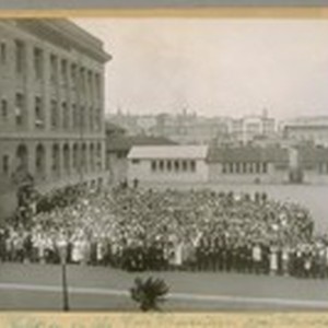 School children in the Fire Prevention Day Parade, Oct. 8th, 1920. High School of Commerce, Fell and Franklin Sts