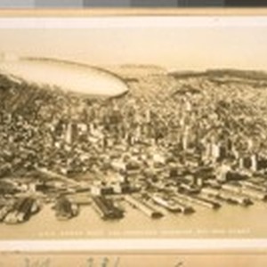 On May 23/32, later destroyed. U.S.S. Akron over San Francisco showing bay and ocean. Piggott Photo, S.F