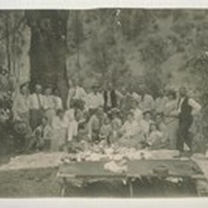 Company Picnic. Lawrence May, an engineer for the Bully Hill Mine (6th from left, rear row); Florence Mesing May (Mrs. L.) (3d lady from right, 2d row). Parents of Prof. Henry May. Pit River