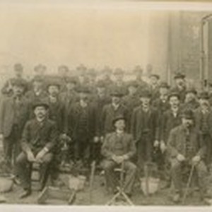 Full titleSergt. Jesse B. Cook's China town squad in 1904. Back row L. to R. Gibbons, Biermann, Badenhauer, R. Curtin, Kavenaugh, Lyon. Next row Johnstone, Ed. Mills, Sequine Harry, Jack Anear, Wright, Molke, Oslowd, Copeland, Riley, Currie, Rodecker, Hobe, Hoghtower, Rudder, McKevett, Fredericks. Front row L to R. Corpl Wm. Ross, Jesse B. Cook Sergt. in charge, G.McMahon Det. Sergt.