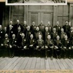 Full titleLeft to Right Top Row - Cody - Davis - Tryon - Moriarty - Wolwebber - O'Shea - Tuit. 2nd Row - Pike - Whittle - Shear - Curran - Mahoney - McCarthy - Ennis - O'Connell - Cronin - Coulter - Stanton - Seatior - Anderson - Ryan - Riordan - Sergt. Murphy - Capt. John Short - Sergt. Witham - Harrigan - Enright - and Jesse B. Cook. This Photo was taken in Sept. 1889 in front of Old Southern Police Station, south side of Folsom St. bet. 4th & 5th Sts. U.S. Presidio Reservation at San Franciso, May 1921.